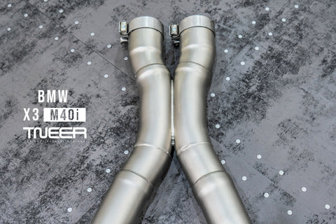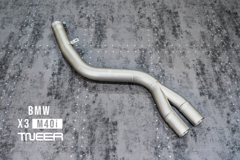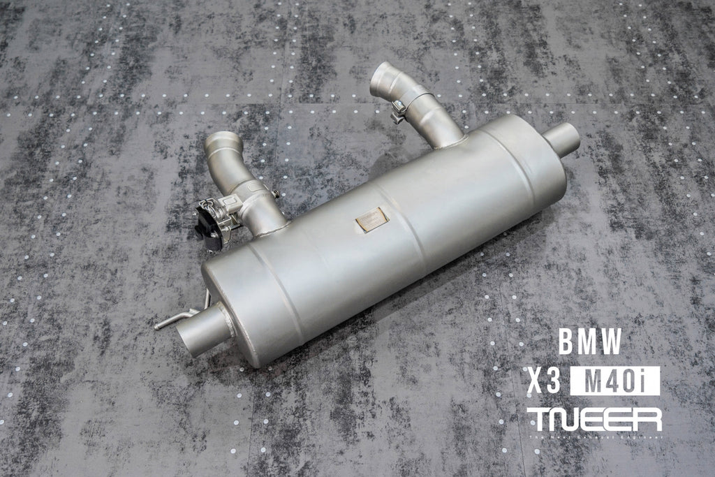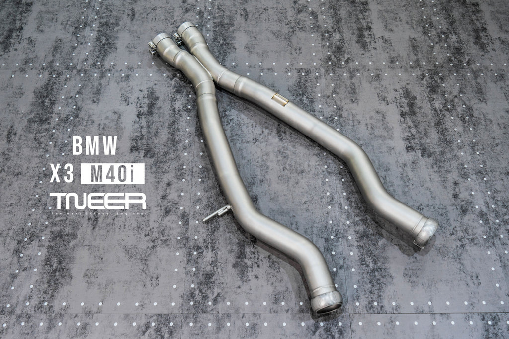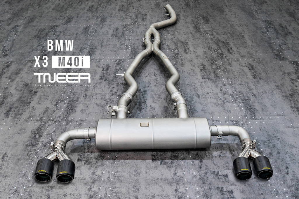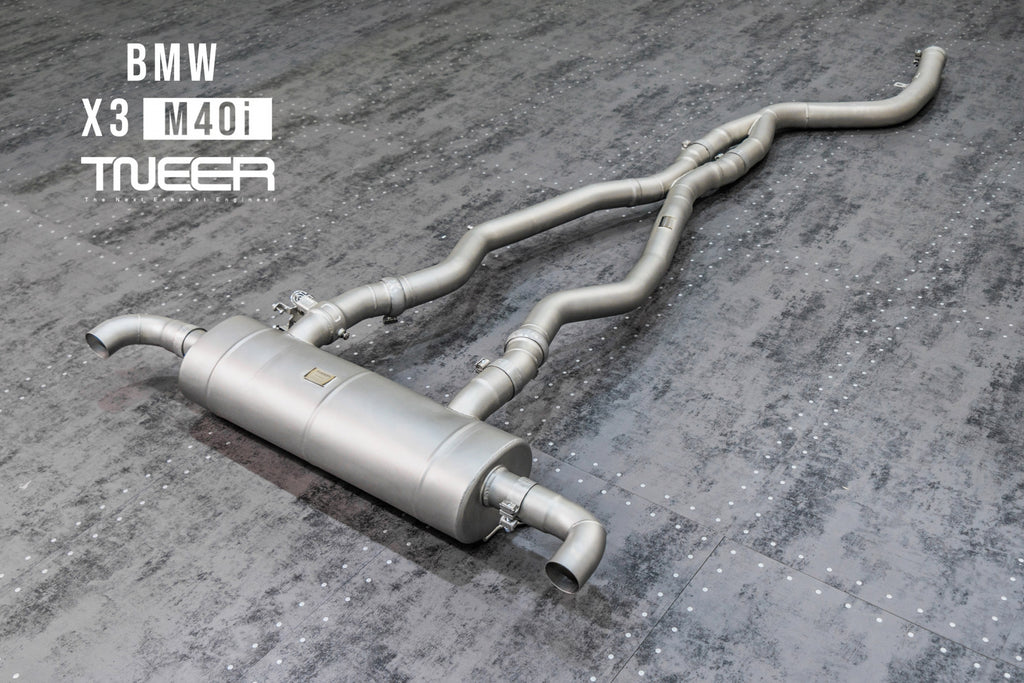 Stand out with this incredible TNEER Front Pipe + Mid Pipe + Rear Mufflers (Valvetronic) + Quad Silver Tips for BMW X3 M40i G01. (Years: 2018 - Present)