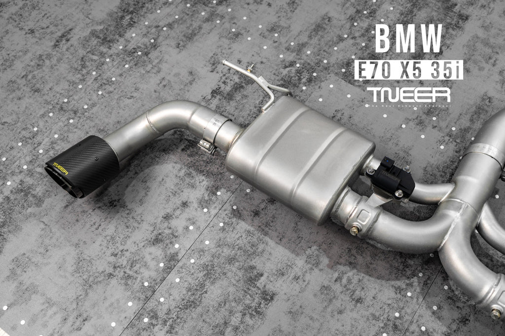 Stand out with this incredible TNEER Front Pipe + Mid Pipe + Rear Mufflers (Valvetronic) + Dual Silver Tips for BMW X5 35i E70 (N55). (Years: 2006 - 2013)