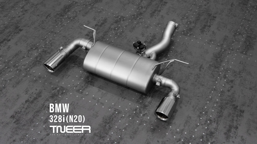 Stand out with this incredible TNEER Front Pipe + Mid Pipe + Rear Mufflers (Valvetronic) + Dual Silver Tips for BMW 320i / 328i F34 (N20 / N26).