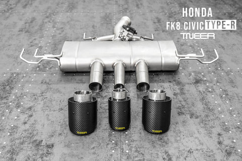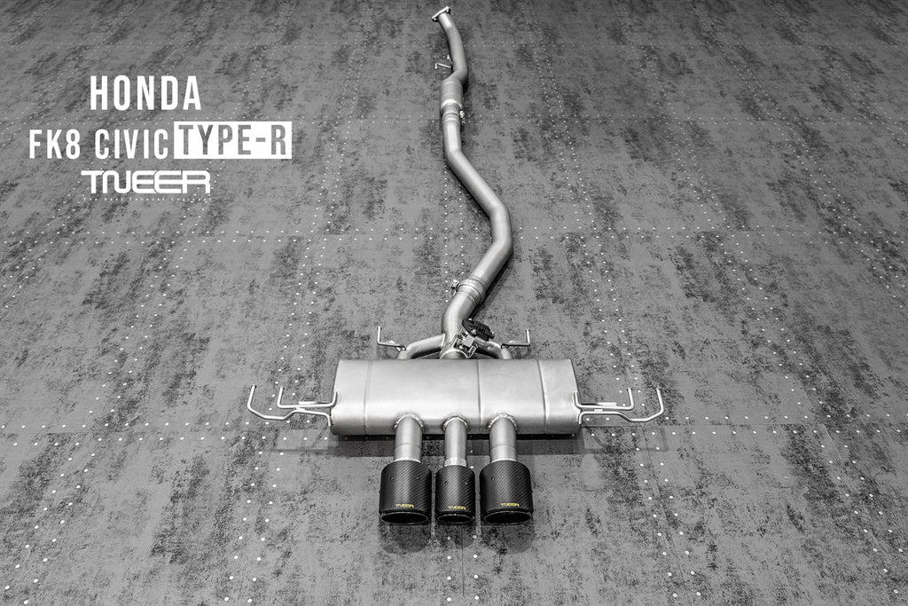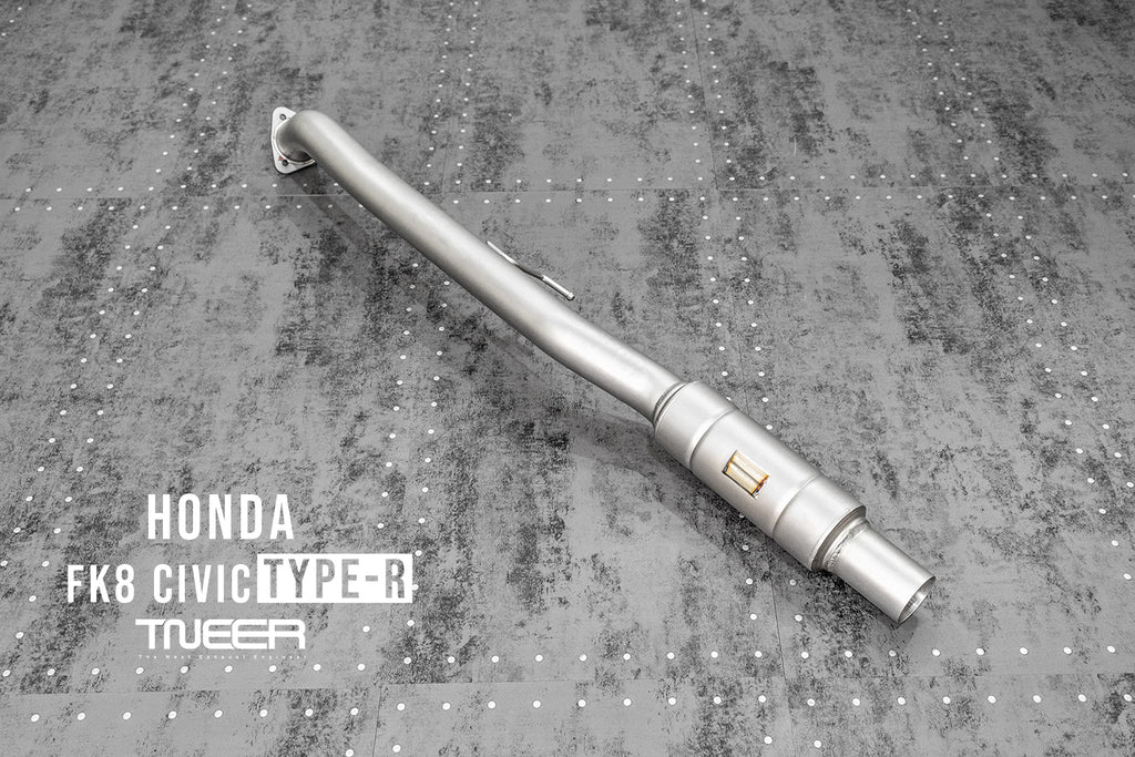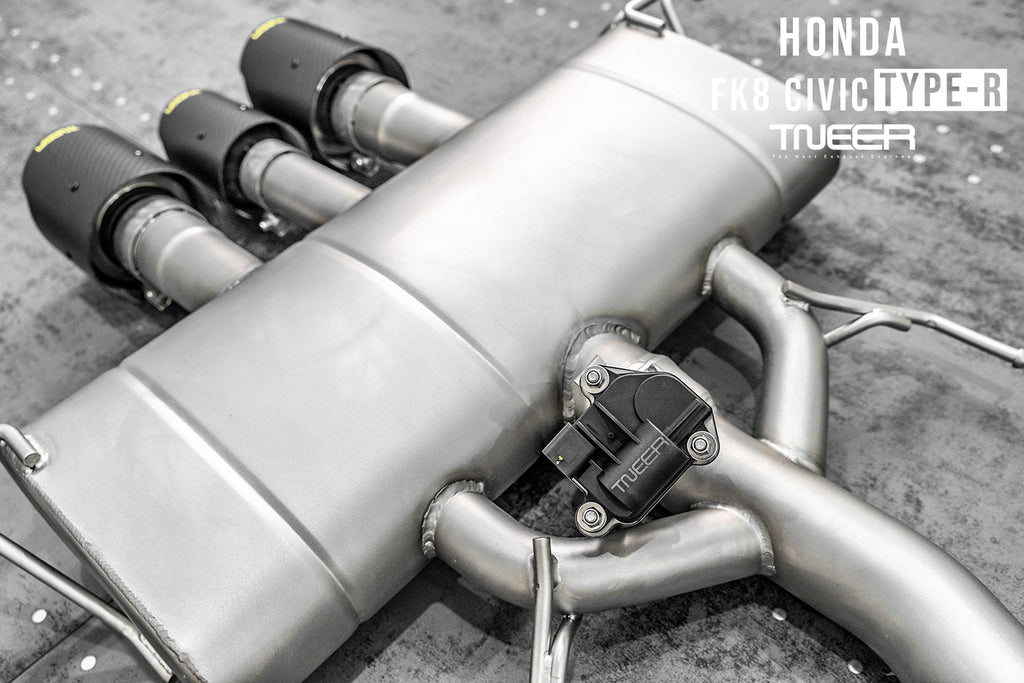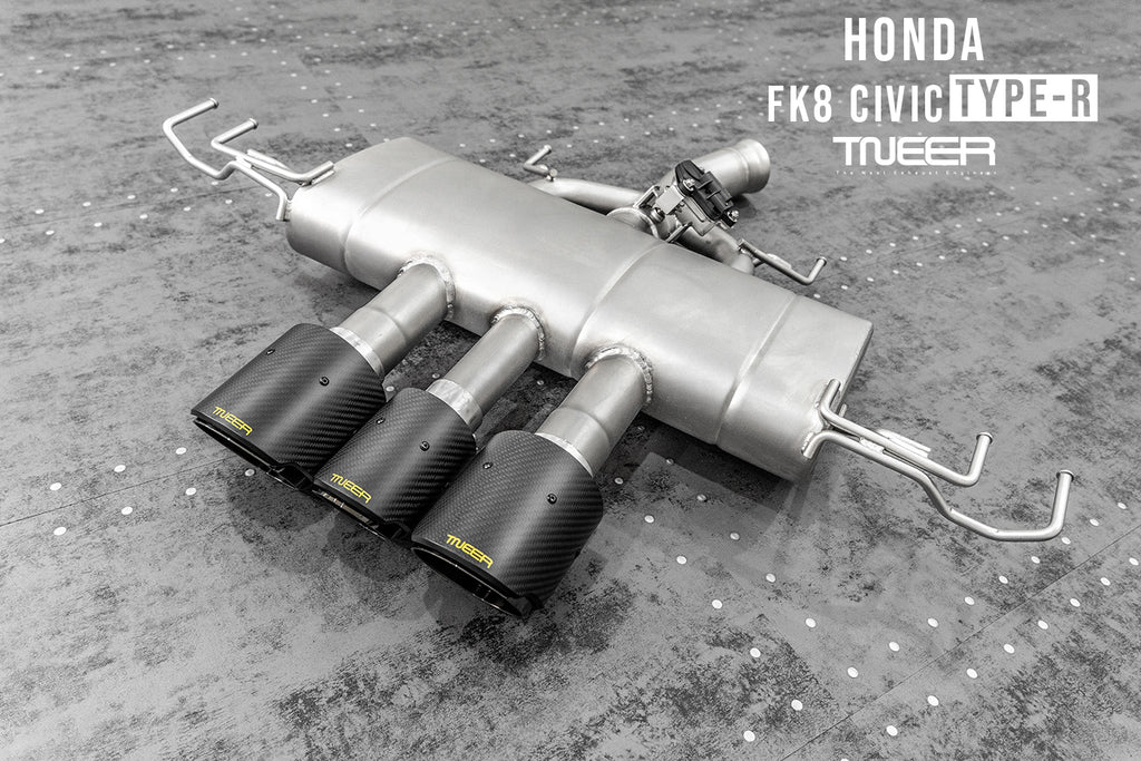 Stand out with this incredible TNEER Front Pipe + Mid Pipe + Rear Mufflers (Valvetronic) + Triple Silver Tips for Honda Civic Type R FK8. (Years: 2017 - Present)