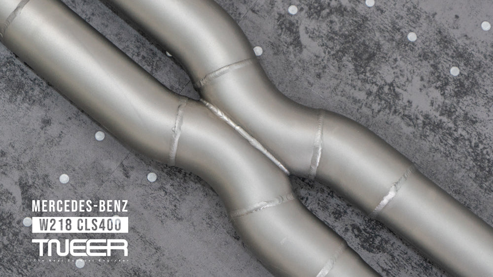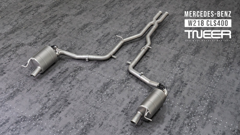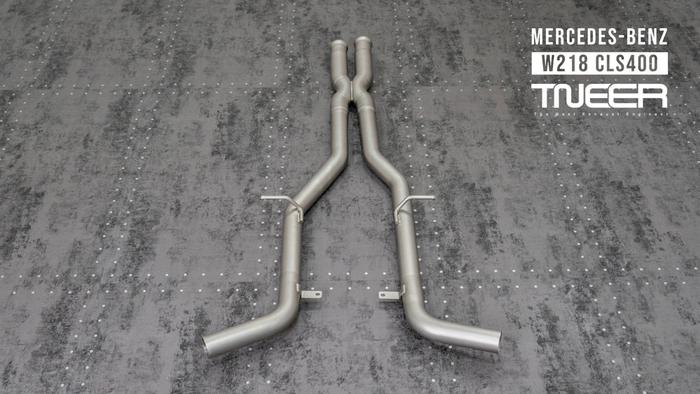 Stand out with this incredible TNEER Catless Downpipe + Mid X-Pipe + Rear Mufflers (Valvetronic) for Mercedes Benz CLS400 3.5T W218. (Years: 2010 - 2018)