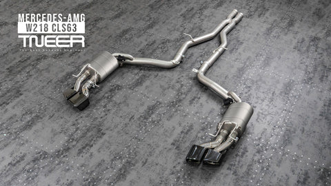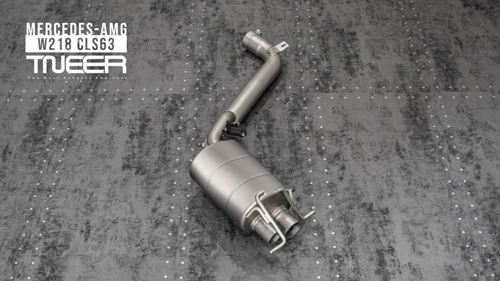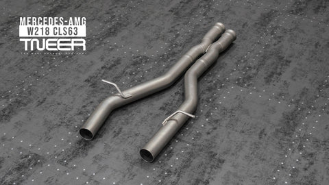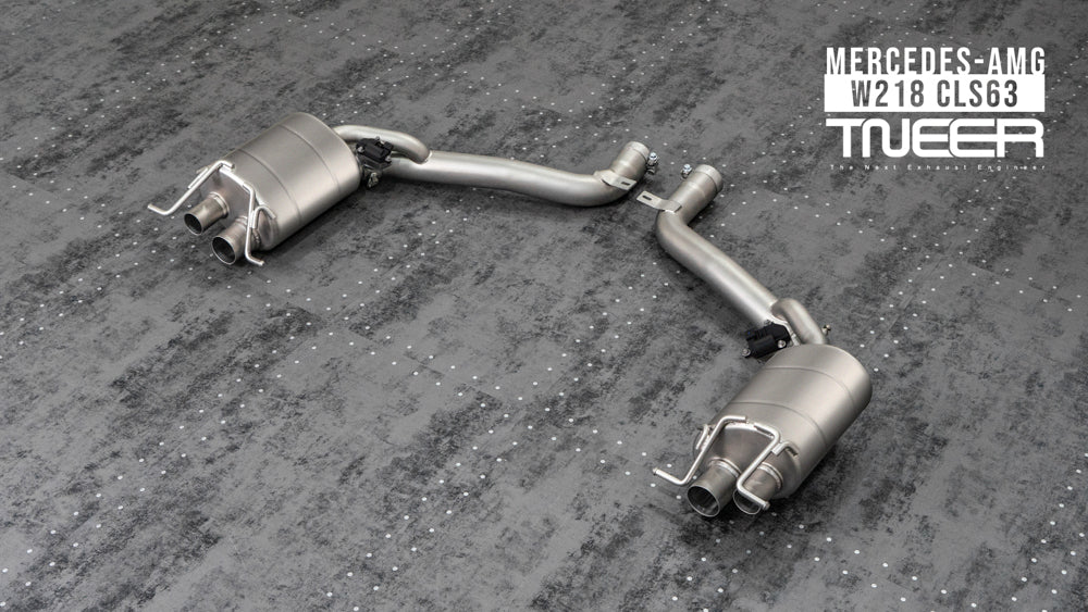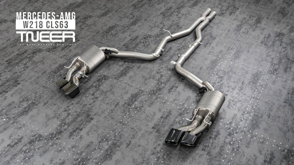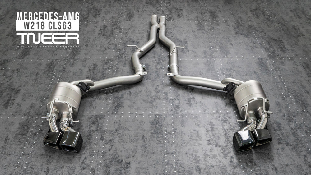 Stand out with this incredible TNEER Mid X-Pipe + Rear Mufflers (Valvetronic) + Hand Crafted Quad Silver Tips for Mercedes Benz CLS63 AMG W218. (Years: 2011 - 2017)
