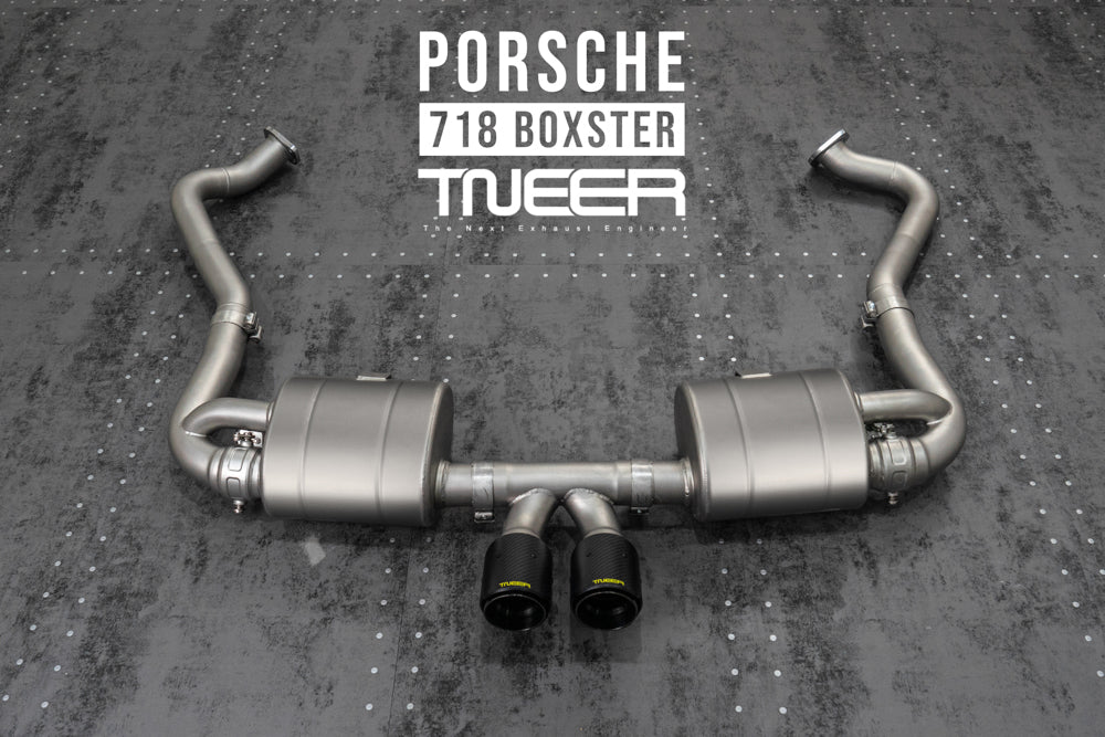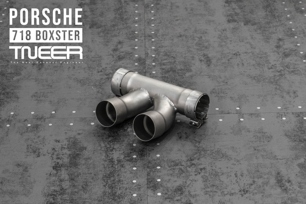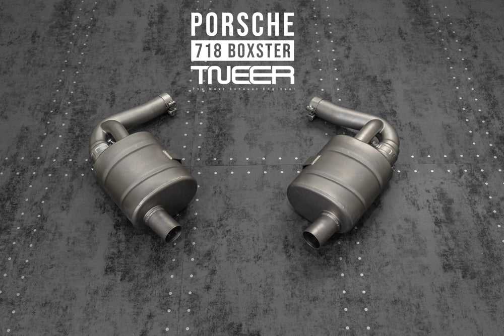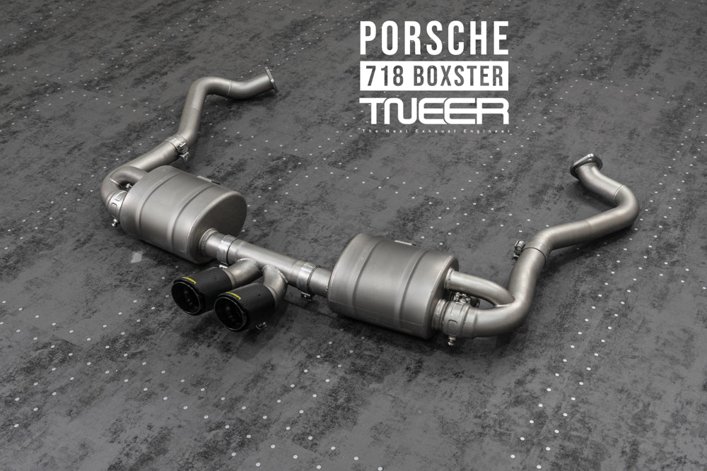 Stand out with this incredible TNEER Mid Pipe + Rear Mufflers (Valvetronic) + Dual Silver Tips for Porsche 718 Boxster. (Years: 2016 - Present)