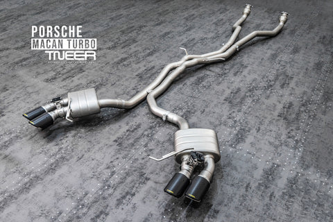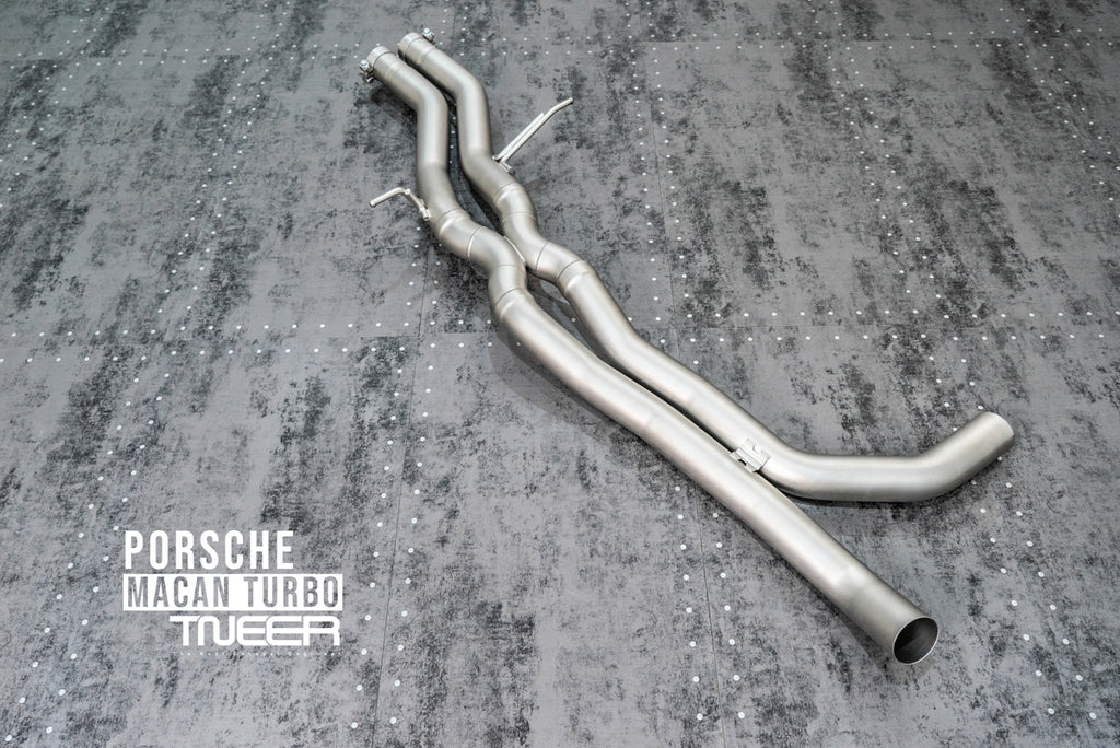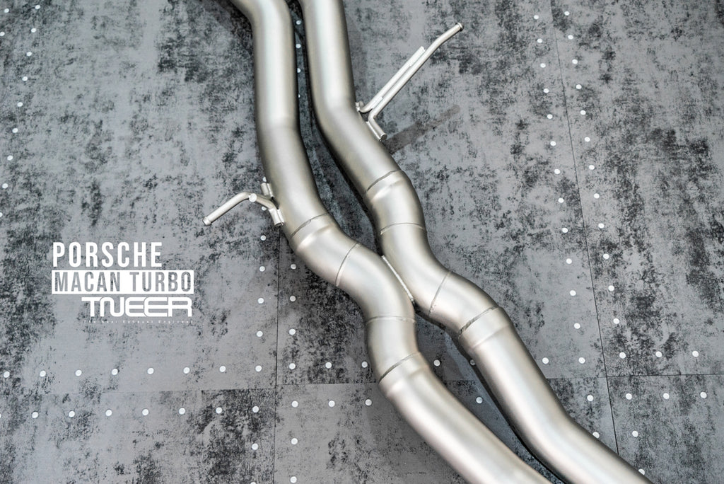 Stand out with this incredible TNEER Front Pipe + Mid X-Pipe + Rear Mufflers (Valvetronic) + Quad Silver Tips for Porsche Macan Turbo Facelift. (Years: 2018 - Present)