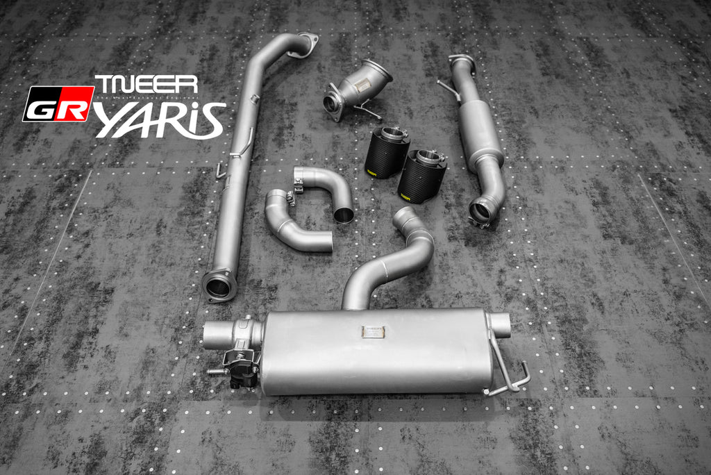 Stand out with this incredible TNEER 2nd Catless Pipe + Mid Pipe + Rear Muffler (Valvetronic) + Dual Silver Tips for Toyota GR Yaris. (Years: 2020 - Present)