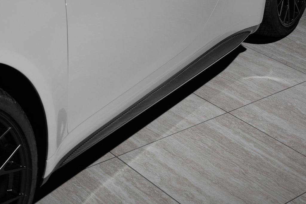 Redesigned side skirts maintain the overall style of the aerodynamic body kit. Rear bumper boasts a large diffuser with air ducts. To complete the look, kit includes carbon fiber mirrors, small spoiler, and Stinger strip for the rear bumper.