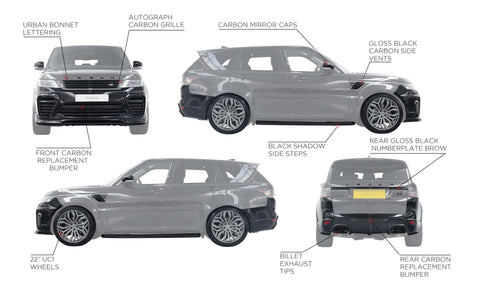 Stand out with this incredible Urban Automotive Full Body Kit for all Range Rover Sport. (Years: 2018 - 2022)